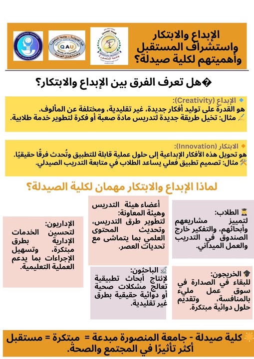 الإبداع والابتكار واستشراف المستقبل وأهميتهم لكلية الصيدلة