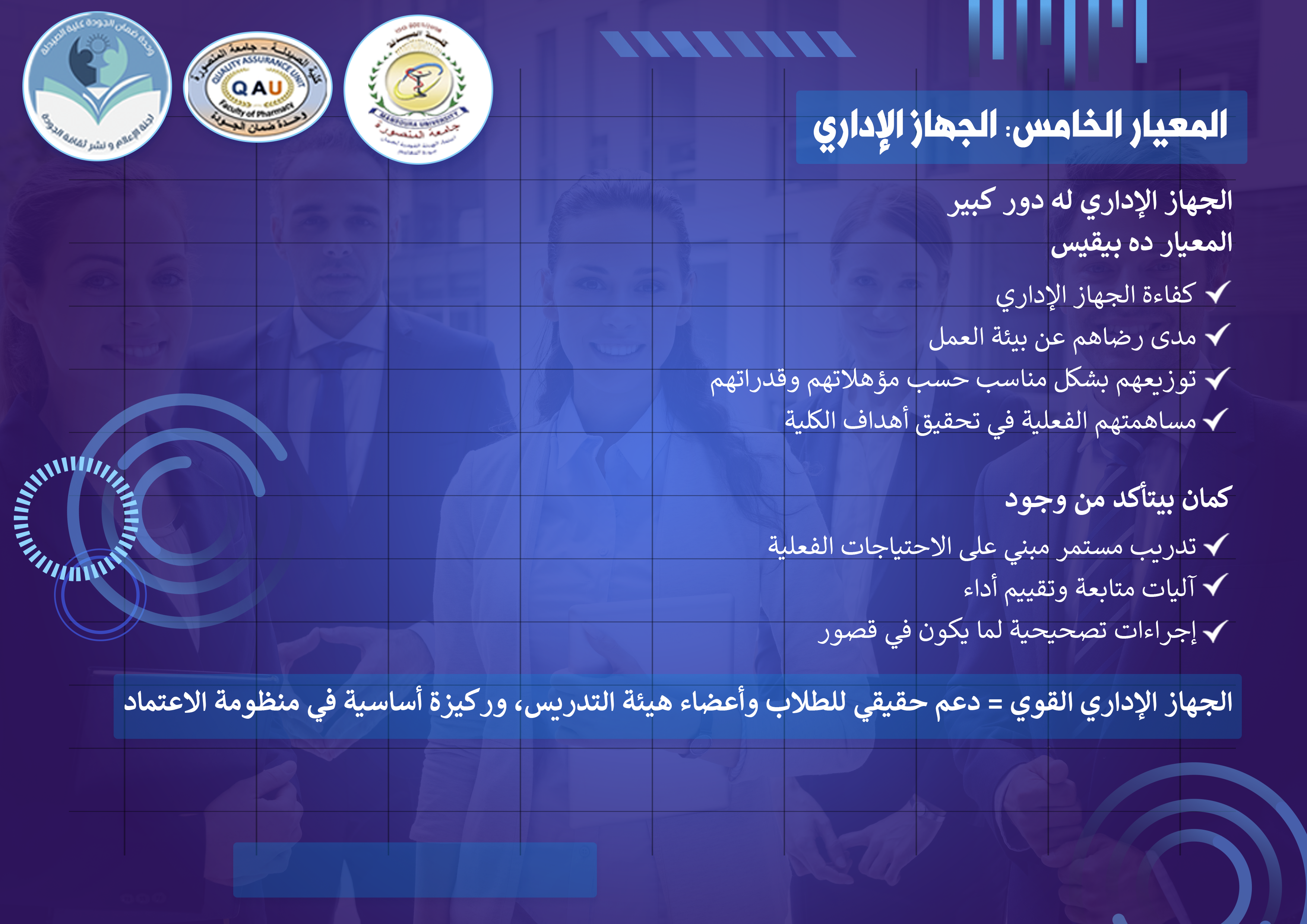 الجهاز الإداري القوي = دعم حقيقي للطلاب وأعضاء هيئة التدريس، وركيزة أساسية في منظومة الاعتماد.