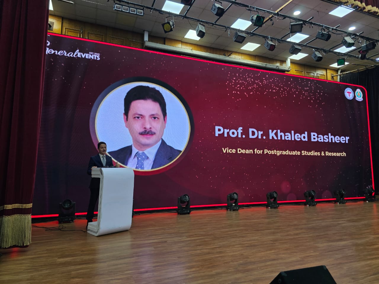 كما أوضح أ.د/ خالد بشير – وكيل الكلية لشؤون الدراسات العليا والبحوث – أن الكلية تولي اهتمامًا كبيرًا بتشجيع البحث العلمي، مؤكّدًا حرص كلية الصيدلة على توفير بيئة بحثية متطورة ومحفزة تدعم طلابها والباحثين، وتفتح أمامهم آفاق الإبتكار والإنتاج العلمي وأضاف سيادته أن الكلية تعمل على تعزيز التعاون البحثي بين الأقسام العلمية المختلفة، وتبني موضوعات بحثية مرتبطة بإحتياجات المجتمع.