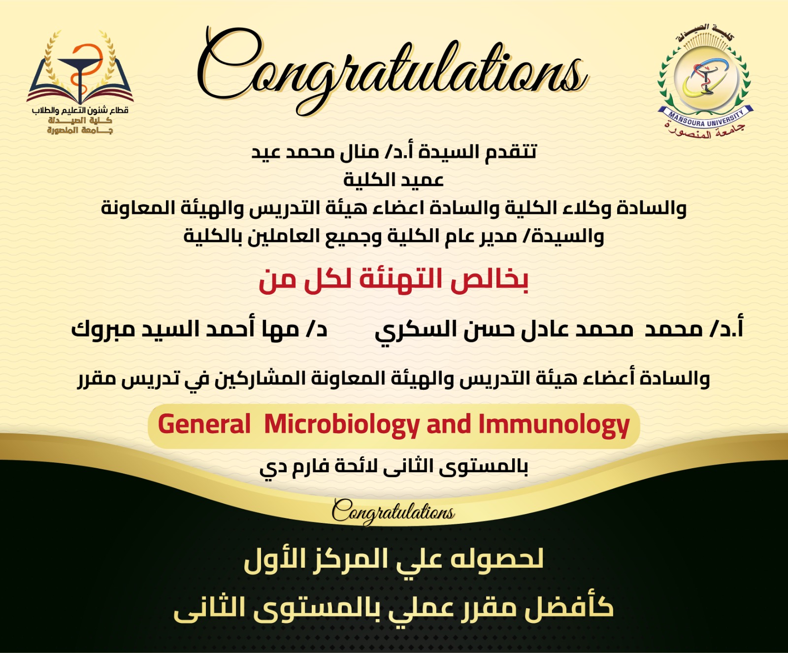08 سبتمبر,2025 حصول مقرر General Microbiology and Immunology المركز الأول كأفضل مقرر عملي بالمستوى الثانى السابق التالي