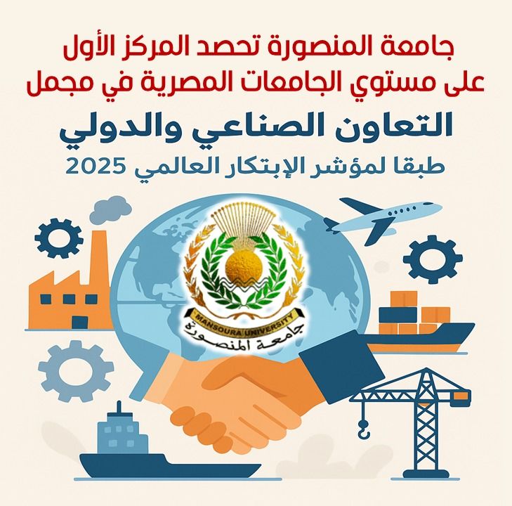 جامعة المنصورة تتصدر الجامعات المصرية في التعاون الصناعي والدولي وفق مؤشر الابتكار العالمي 2025