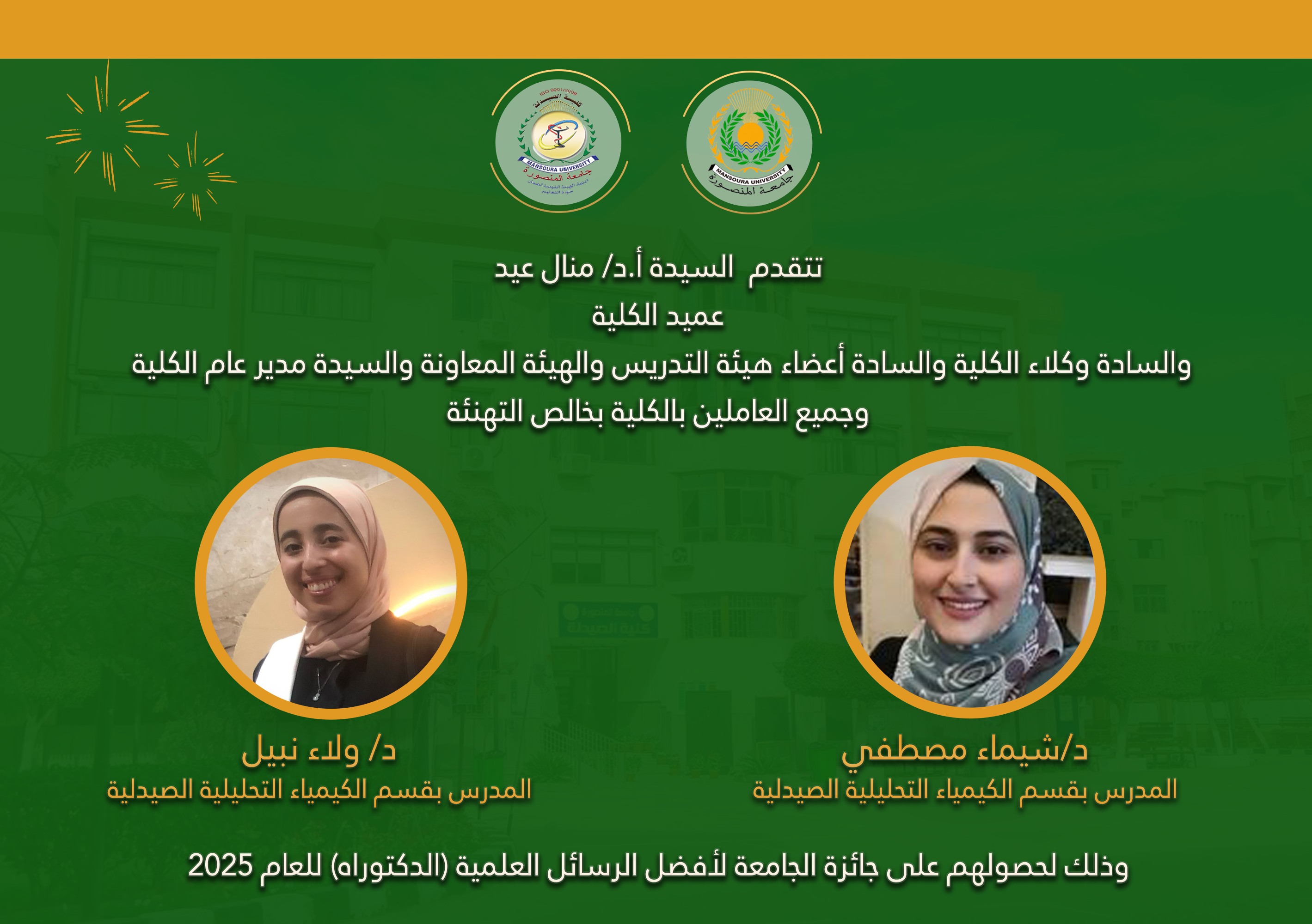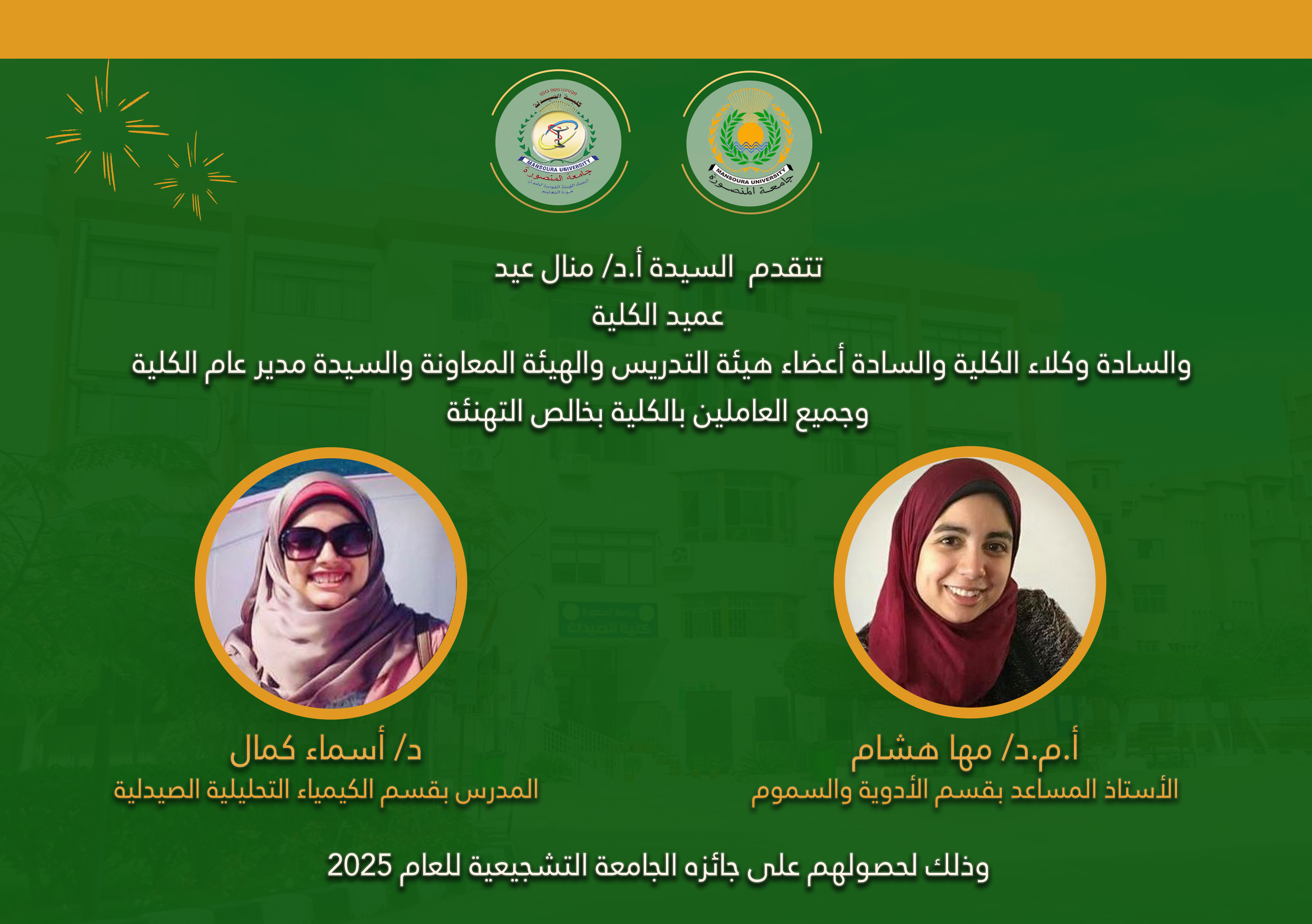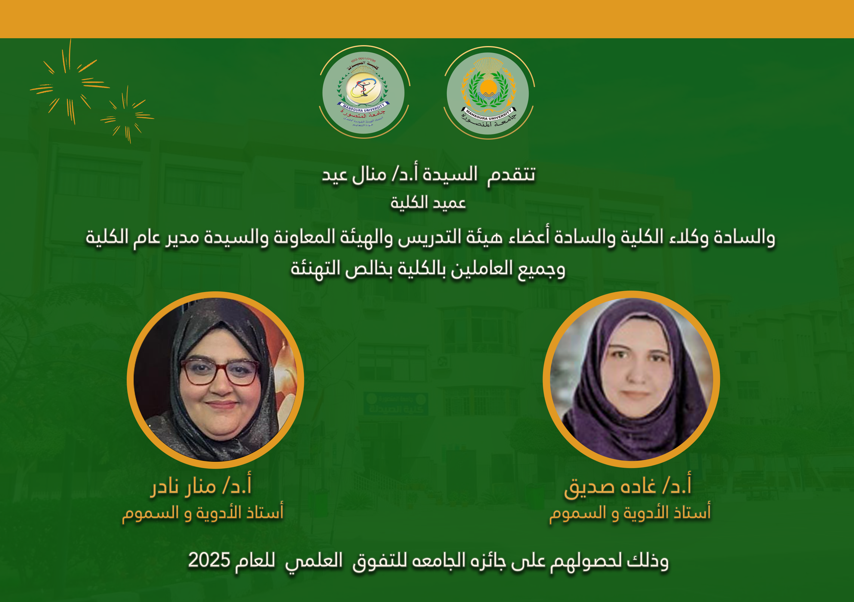 كلية الصيدلة تحصد عدد 10 من جوائز جامعة المنصورة للعام 2025