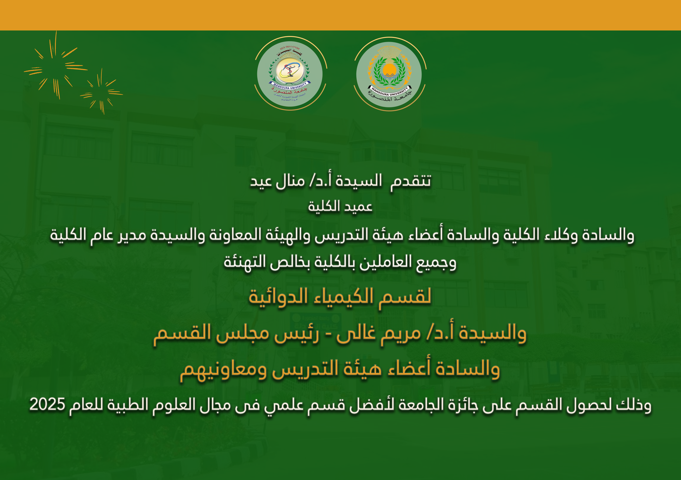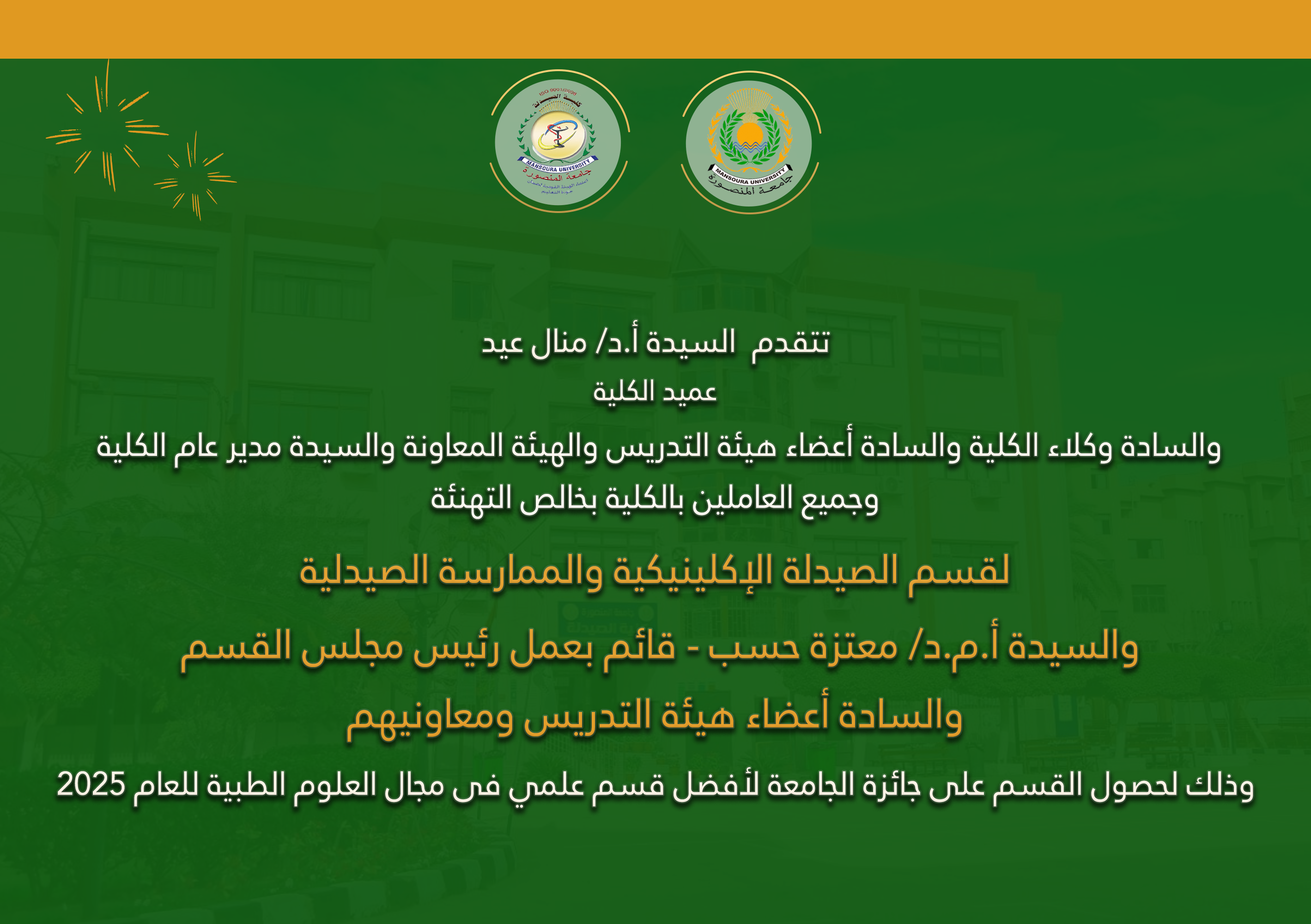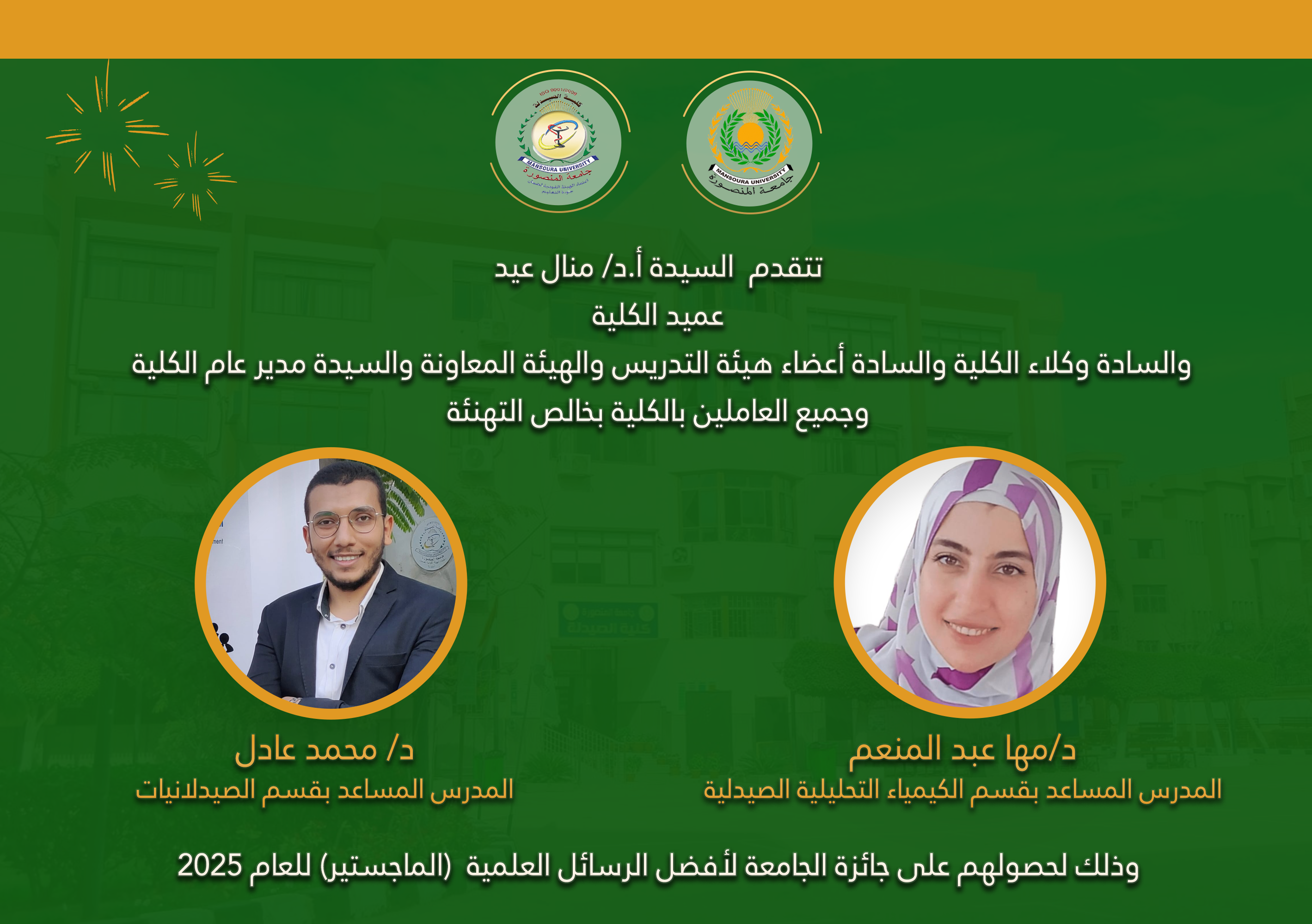 كلية الصيدلة تحصد عدد 10 من جوائز جامعة المنصورة للعام 2025