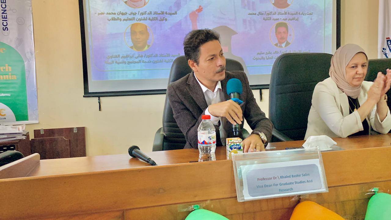 وبحضور: السيد الأستاذ الدكتور/ خالد بشير – وكيل الكلية لشؤون الدراسات العليا والبحوث