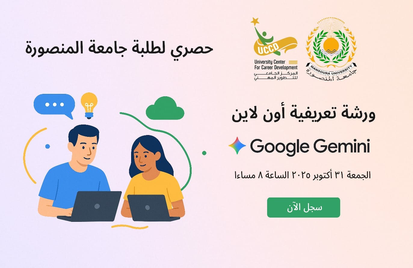 طلاب جامعة المنصورة جاهزين تكتشفوا قوة الذكاء الاصطناعي مع Google Gemini؟