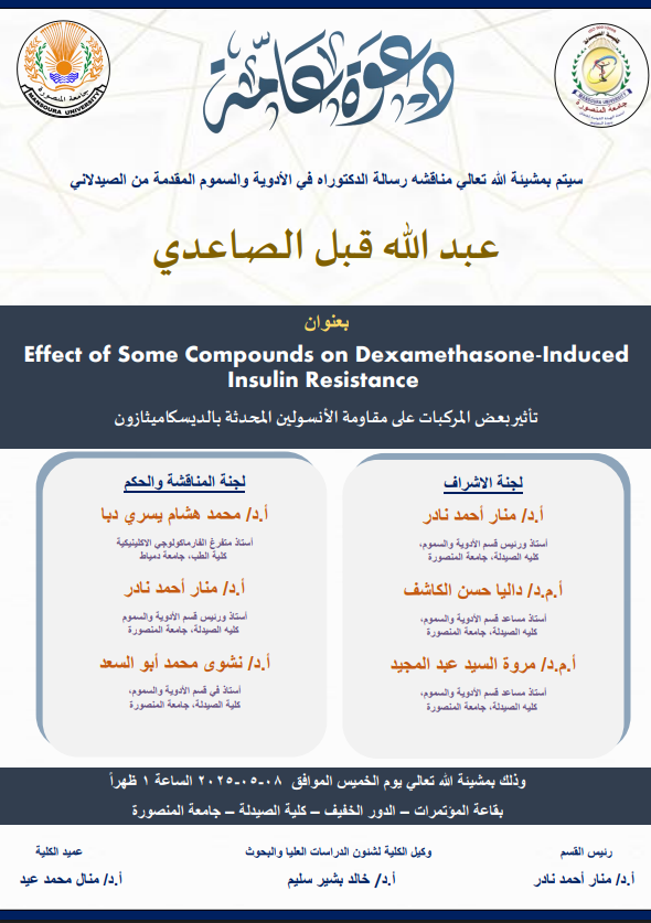 يارا محمد سليمان الزيارات: 153 مناقشة رسالة الدكتوراه فى الأدوية والسموم المقدمة من الصيدلى/ عبد الله قبل الصاعدى السابق التالي