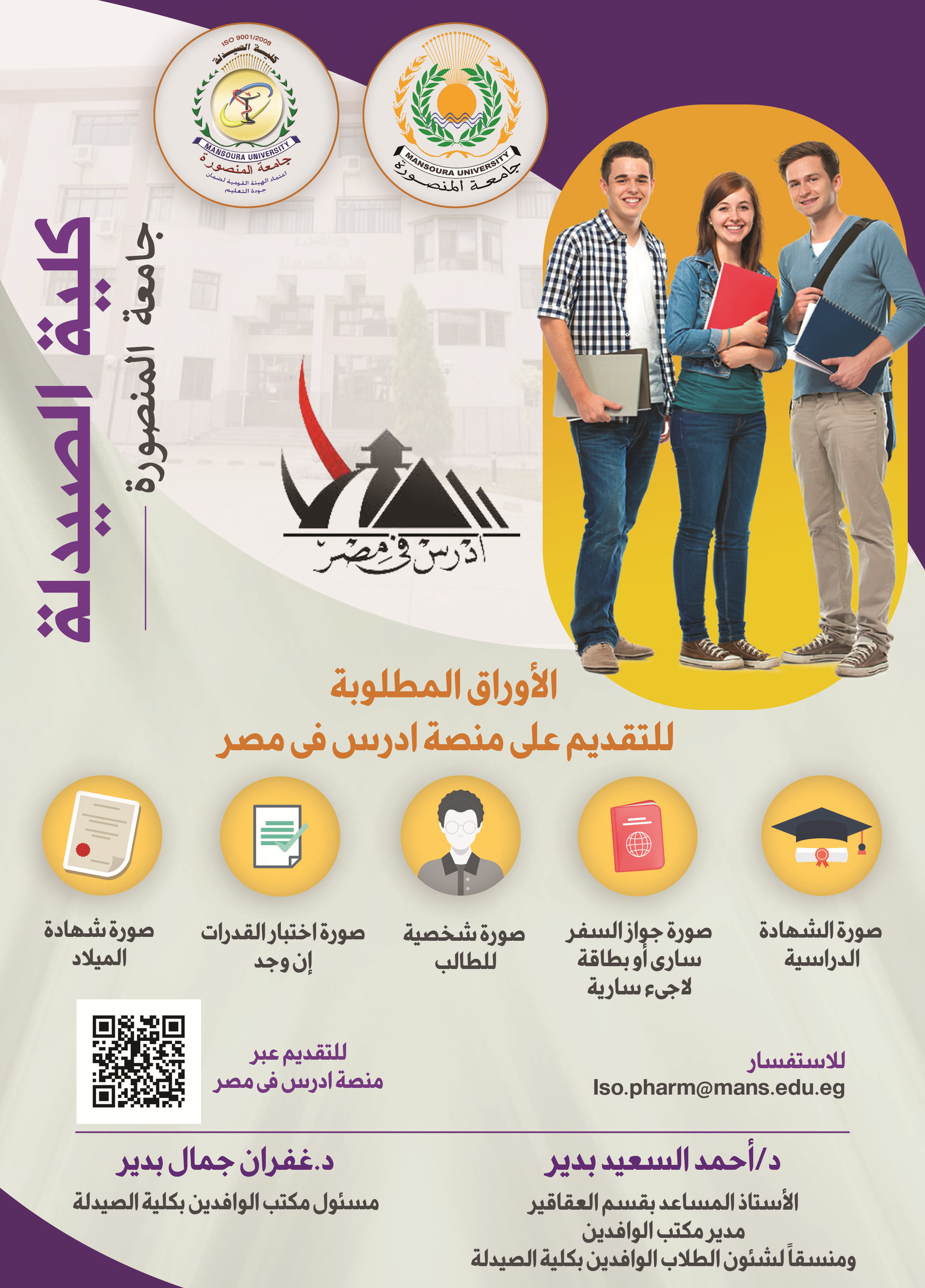 Previous Next ميار سمير تعرف على المستندات المطلوبة للتقديم عبر منصة ادرس في مصر صورة الشهادة الدراسية صورة جواز السفر ساري أو بطاقة لاجيء سارية صورة شخصية للطالب صورة اختبار القدرات إن وجد صورة شهادة الميلاد للاستفسار عنوان البريد الإلكتروني هذا محمي من روبوتات السبام. يجب عليك تفعيل الجافاسكربت لرؤيته. السابق التالي