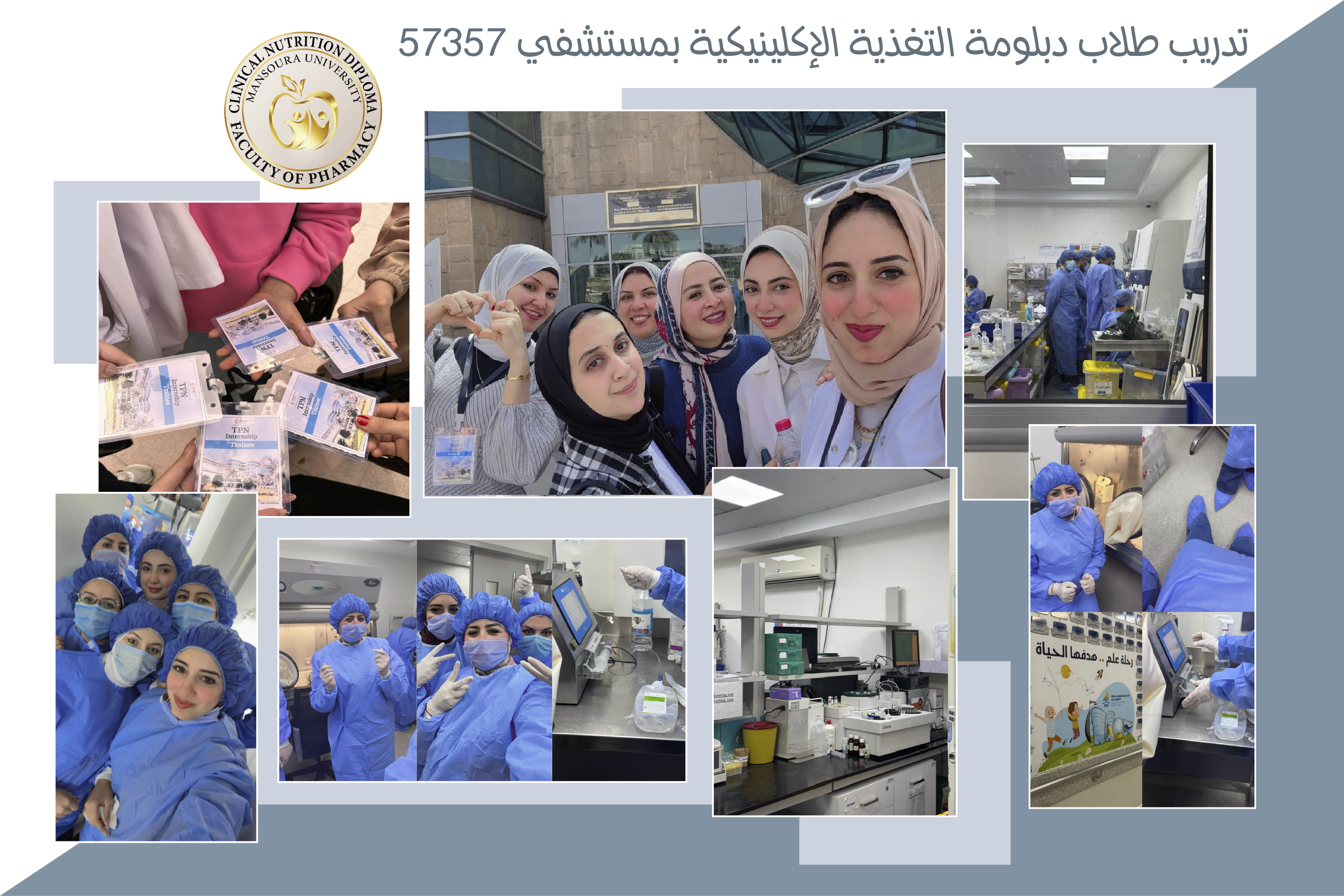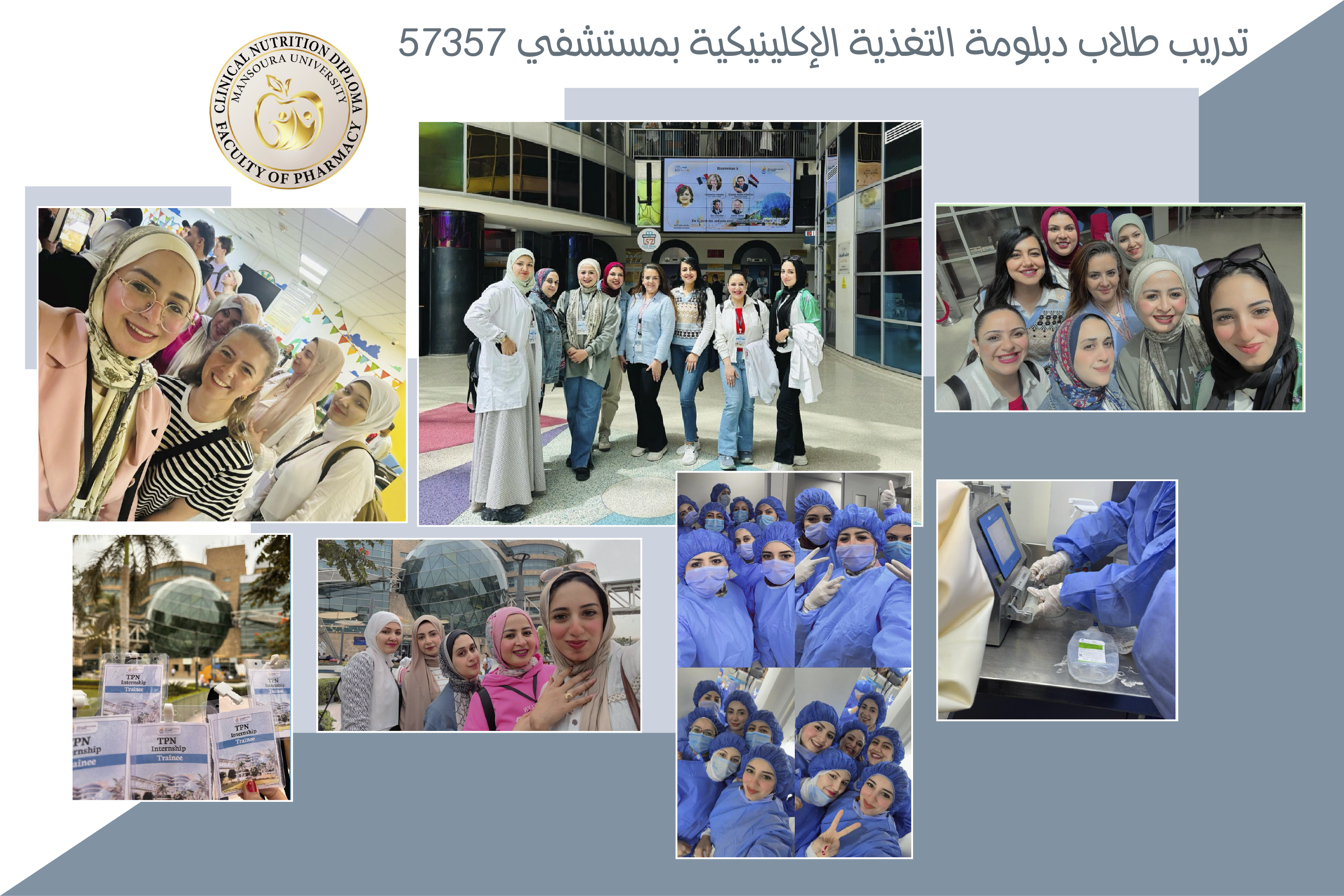 في إطار حرص كلية الصيدلة على دعم طلاب الدراسات العليا من خلال توفير فرص تدريب عملي متميزة، وتنفيذًا لخطة برنامج دبلومة التغذية الإكلينيكية لدمج المعرفة الأكاديمية بالخبرة الإكلينيكية، تم تنفيذ تدريب ميداني لطلاب البرنامج داخل مستشفى سرطان الأطفال مصر 57357، وذلك تحت رعاية الأستاذ الدكتور / منال عيد – عميد الكلية ،الأستاذ الدكتور/ خالد بشير – وكيل الكلية لشئون الدراسات العليا والبحوث ،الأستاذ الدكتور/ يسرا الفار – مدير برنامج دبلومة التغذية الإكلينيكية وإشراف الدكتور/ كريم سعد – منسق التدريب بالبرنامج وقد تم التدريب بالتعاون مع إدارة التعليم والتدريب الصيدلي بالمستشفى، وتحت إشراف الأستاذ الدكتور/ شريف أبو النجا – مدير مستشفى سرطان الأطفال مصر 57357 والدكتور/ أحمد أنور – مدير التعليم والتدريب الصيدلي بالمستشفى،وفريق التدريب المكون من دكتور/نرمين و دكتور/سلمى