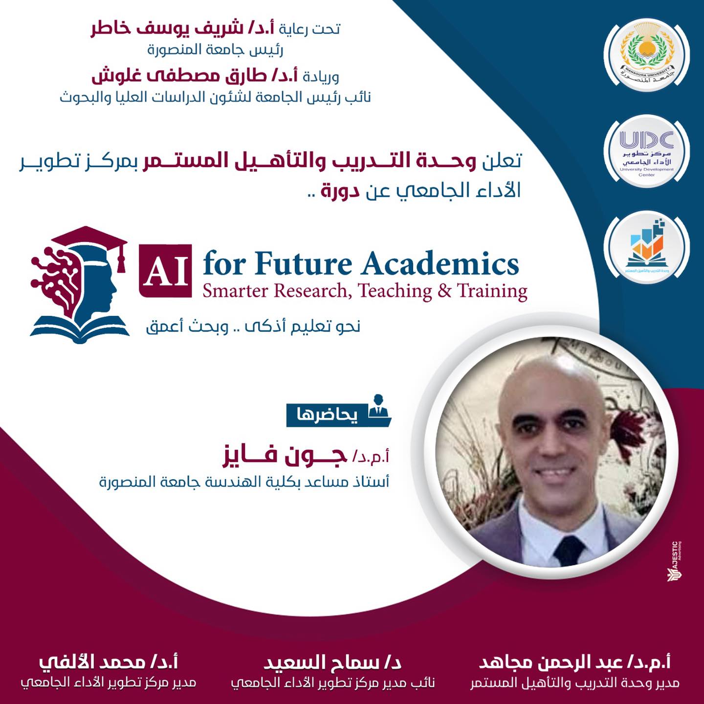 الدورة التدريبية المتخصصة “الذكاء الاصطناعي للأكاديميين: بحث أذكى، تدريس أذكى، تدريب أذكى”