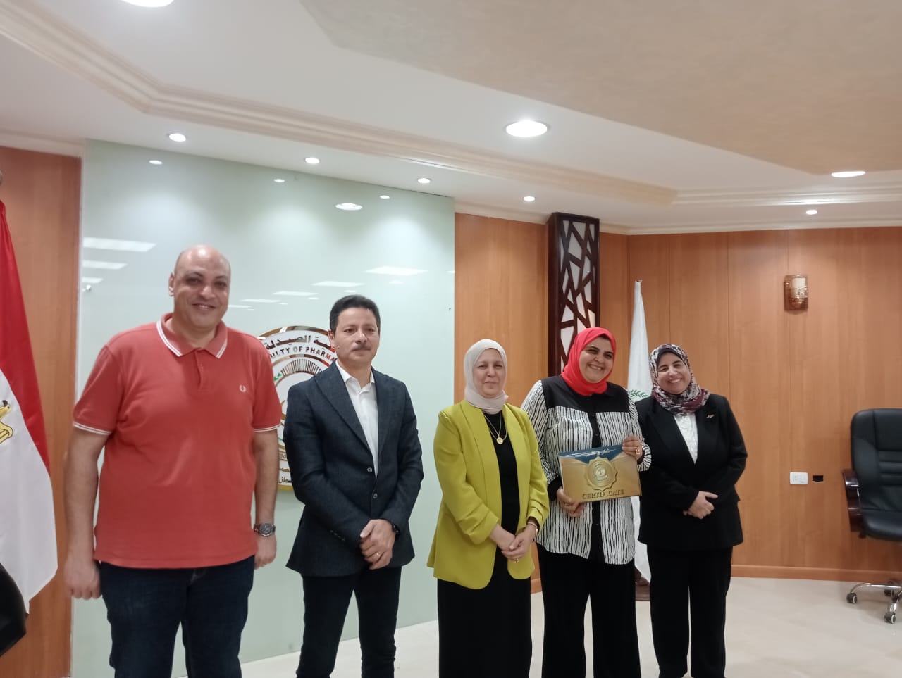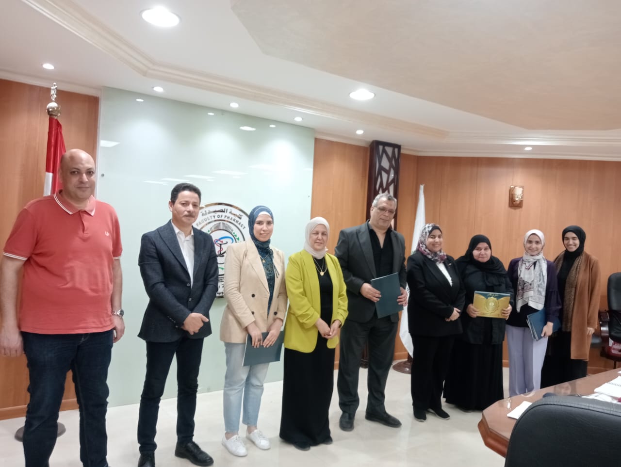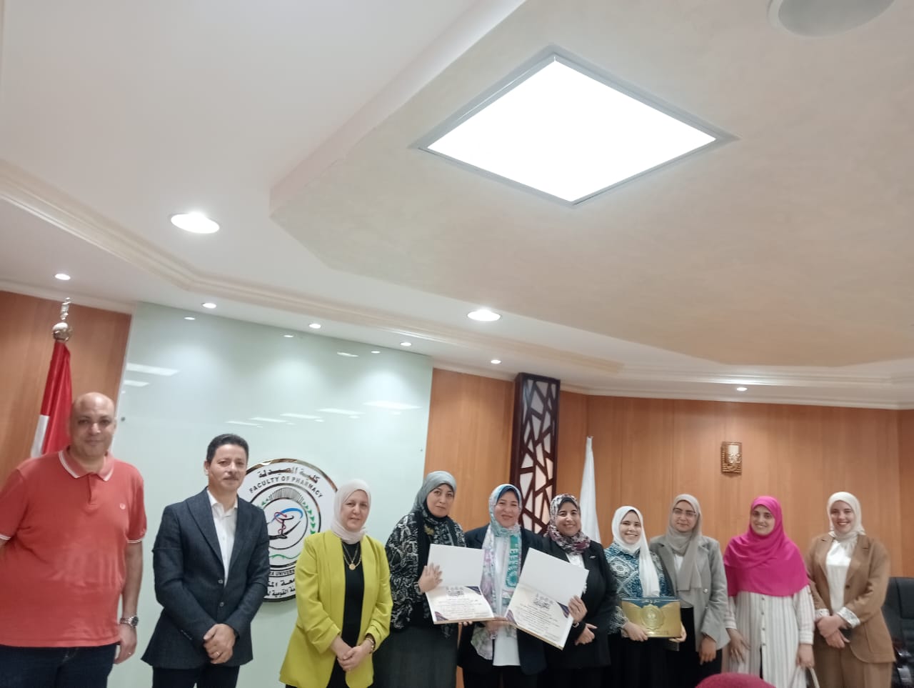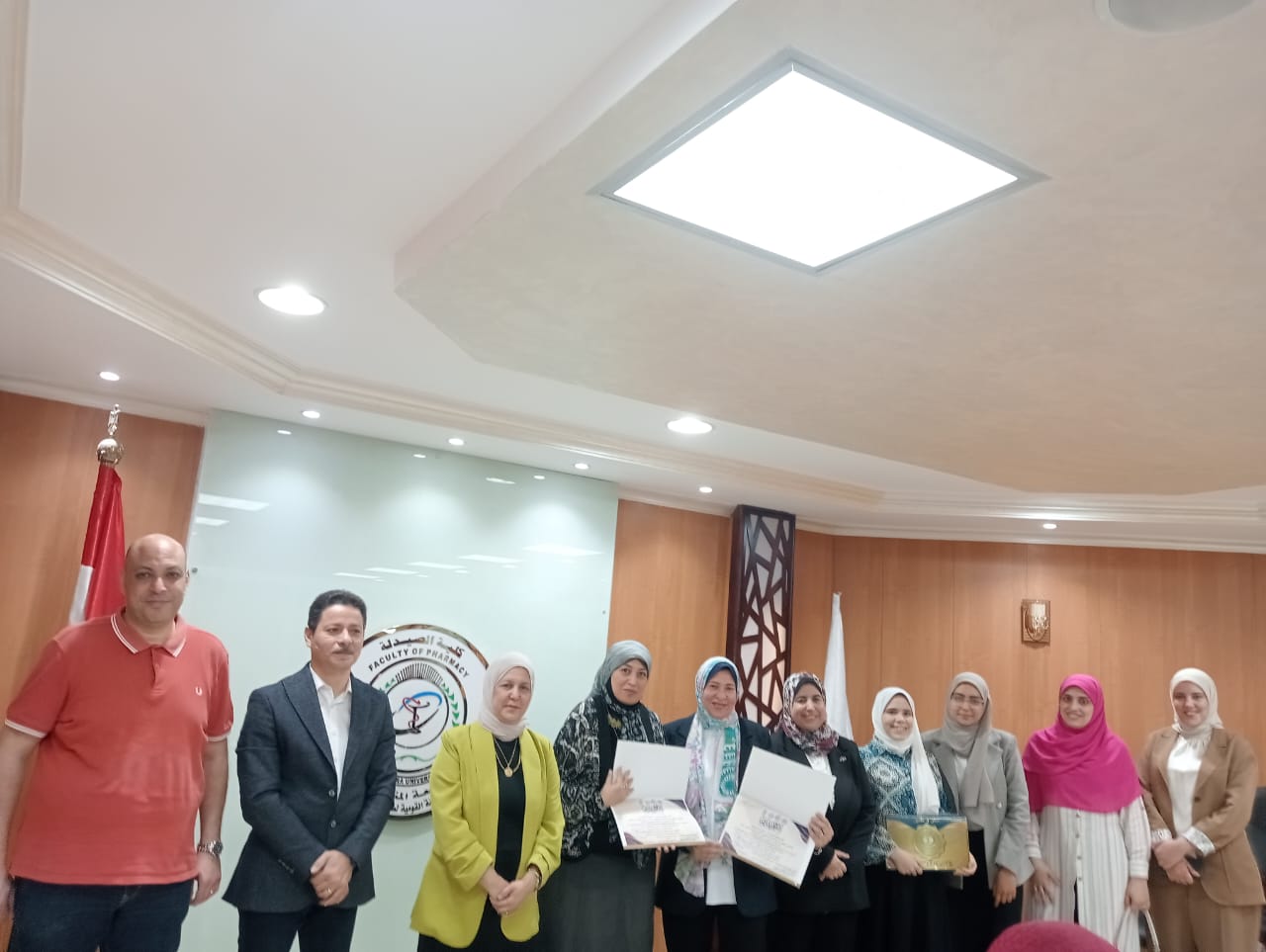 تحت رعاية السيدة الأستاذ الدكتور / منال عيد – عميد الكلية ، السيد الأستاذ الدكتور / خالد بشير - وكيل الكلية لشئون الدراسات العليا والبحوث والسيد الأستاذ الدكتور / هانى قناوى – وكيل الكلية لشئون خدمة المجتمع وتنمية البيئة السيدة الأستاذ الدكتور / جينى جيهان نصر – وكيل الكلية لشئون التعليم والطلاب وريادة السيدة الأستاذ الدكتور/ مروة صلاح الدين – مدير برنامج الصيدلة الإكلينيكية ،وبحضور السادة رؤساء الأقسام تم تكريم رؤساء الأقسام العلمية عن أفضل قسم علمى وكذلك السادة أعضاء هيئة التدريس والهيئة المعاونه عن أفضل مقرر علمى بقطاع شئون التعليم والطلاب عن الفصل الدراسى الأول للعام الجامعى2024/2025 وذلك بمجلس الكلية اليوم الثلاثاء الموافق 22 أبريل 2025