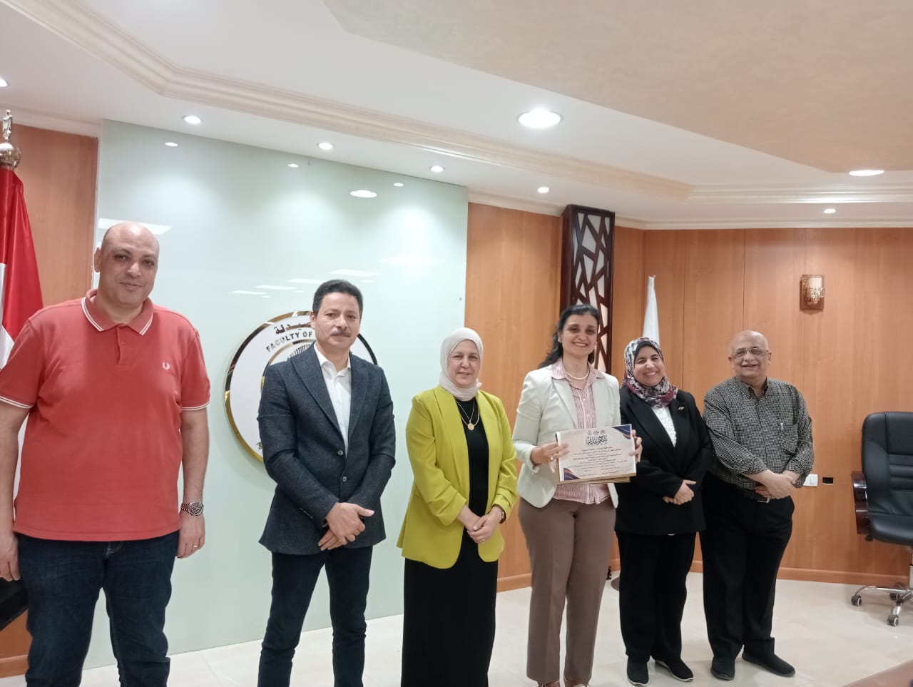 تكريم السادة أعضاء هيئة التدريس والهيئة المعاونة الحاصلون على أفضل مقرر عملى وأفضل مقرر نظرى على المنصة التعليمية والثلاث مراكز الأولى كأفضل أقسام علمية للفصل الدراسى الأول 2024/2025