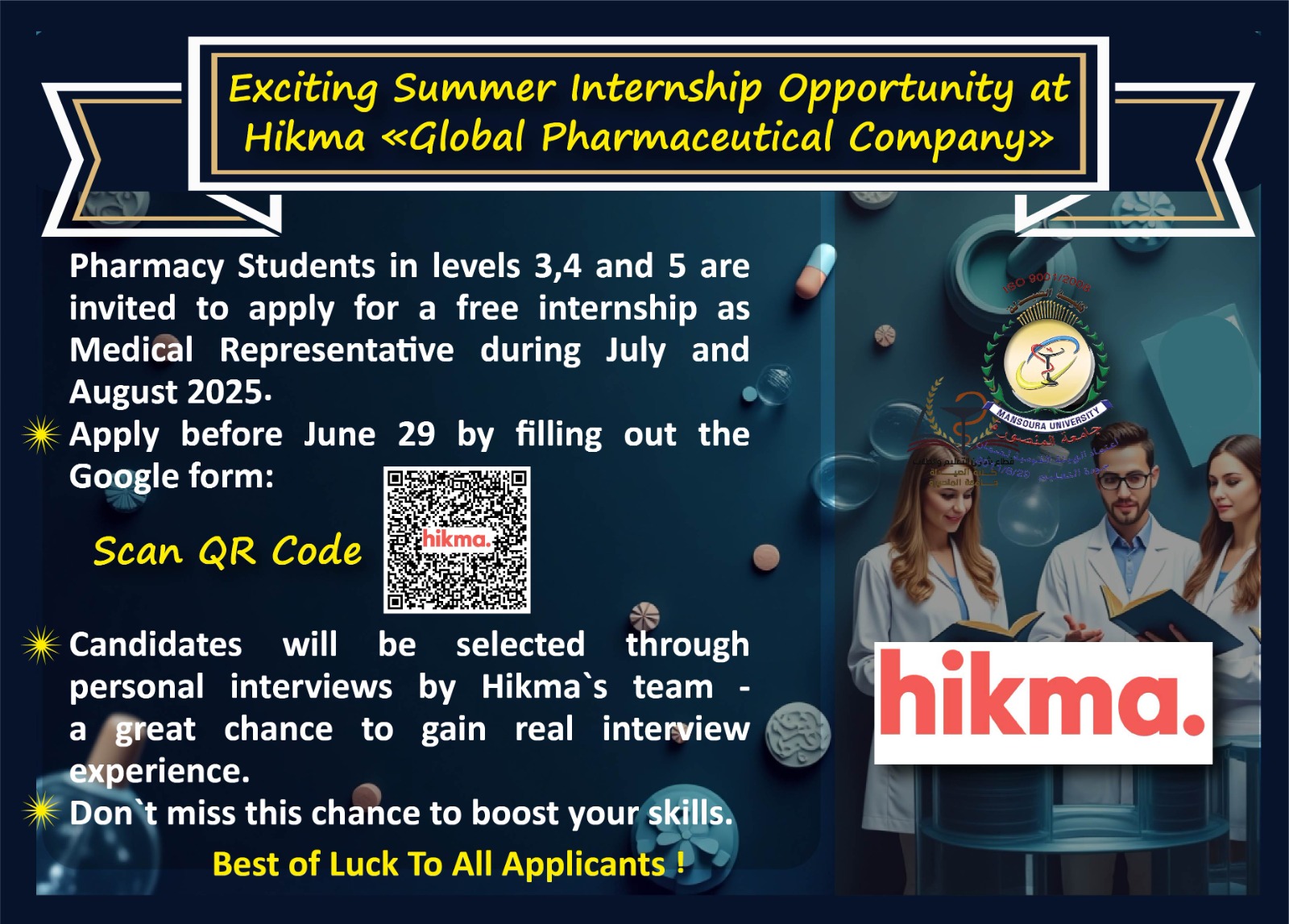 Previous Next 25 Jun,2025 Exciting Summer Internship Opportunity at Hikma «Global Pharmaceutical Company» Prev Next