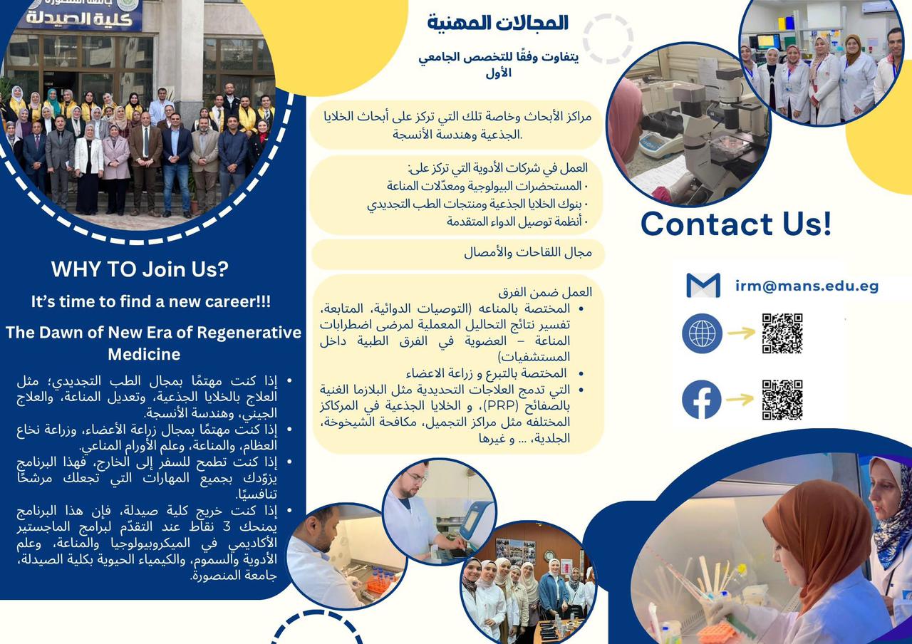 📌 للمزيد من التفاصيل عن برنامج الماجستير المهني في المناعة و الطب التجددي