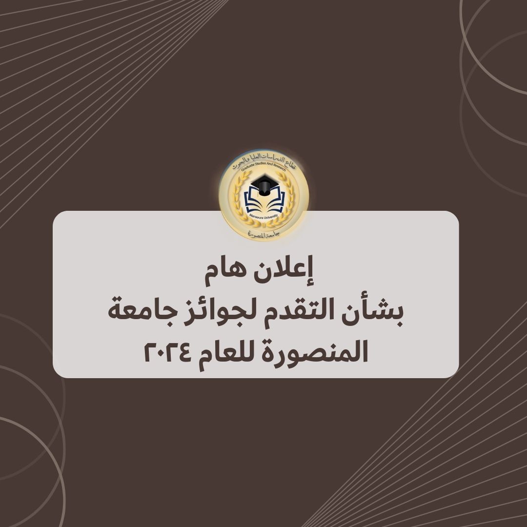 تنبيه بشأن التقدم لجوائز جامعة المنصورة للعام الحالي ٢٠٢٤