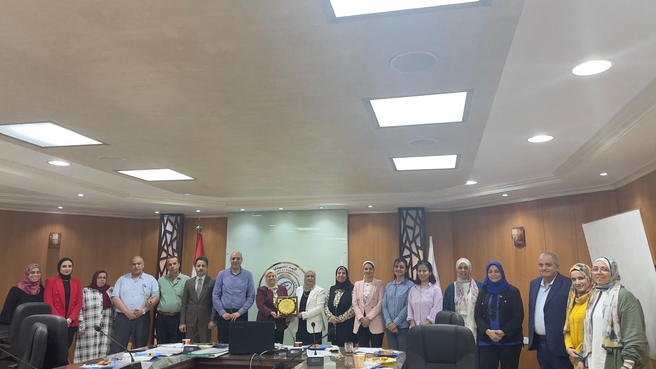 مجلس كلية الصيدلة - جامعة المنصورة يكرم د/ منى النقيطى مدير وحدة ضمان الجودة