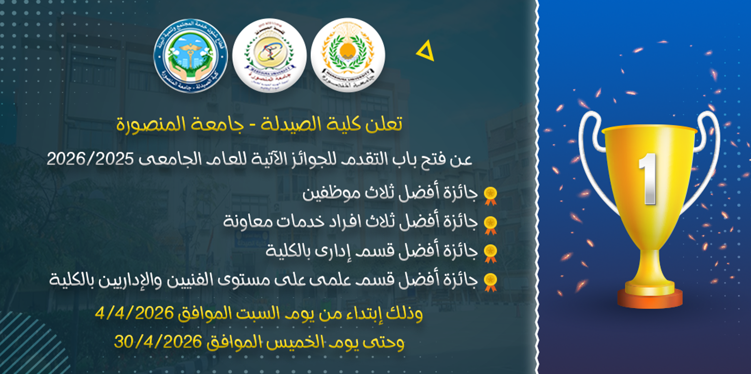 فتح باب التقدم لجوائز كلية الصيدلة للجهاز الإدارى بالكلية لعام 2026/2025